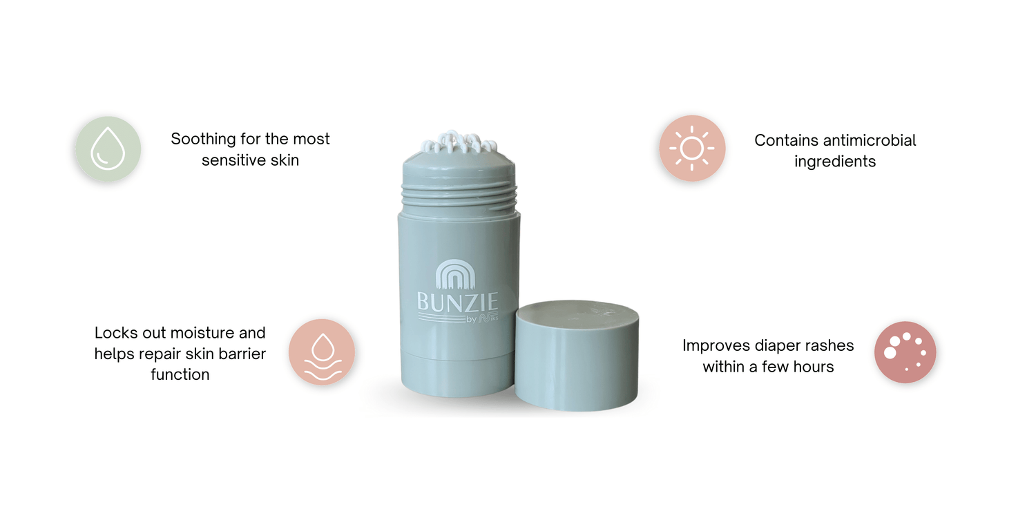 Do you ever need to apply diaper cream on the go but have nowhere to wash your hands before and after the application? Well, BUNZIE is here for you! Simply twist up the diaper rash cream and smoothly apply our clean ingredient cream to your little one's bottom. The top is easy to clean— just one swipe on the clean diaper before storing. Worried about germs? We’ve got you! Zinc (our main active ingredient) is a naturally occurring antimicrobial!